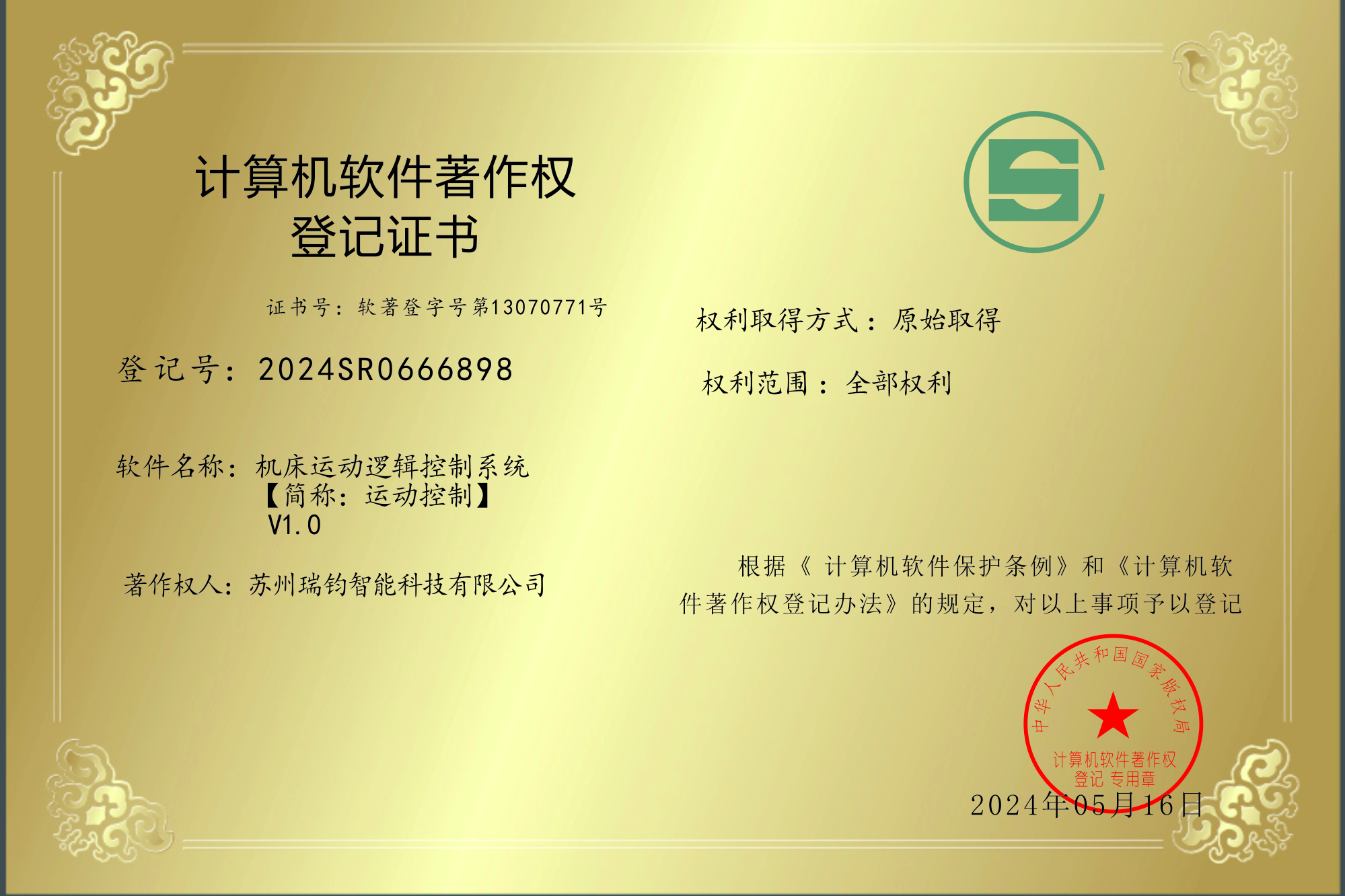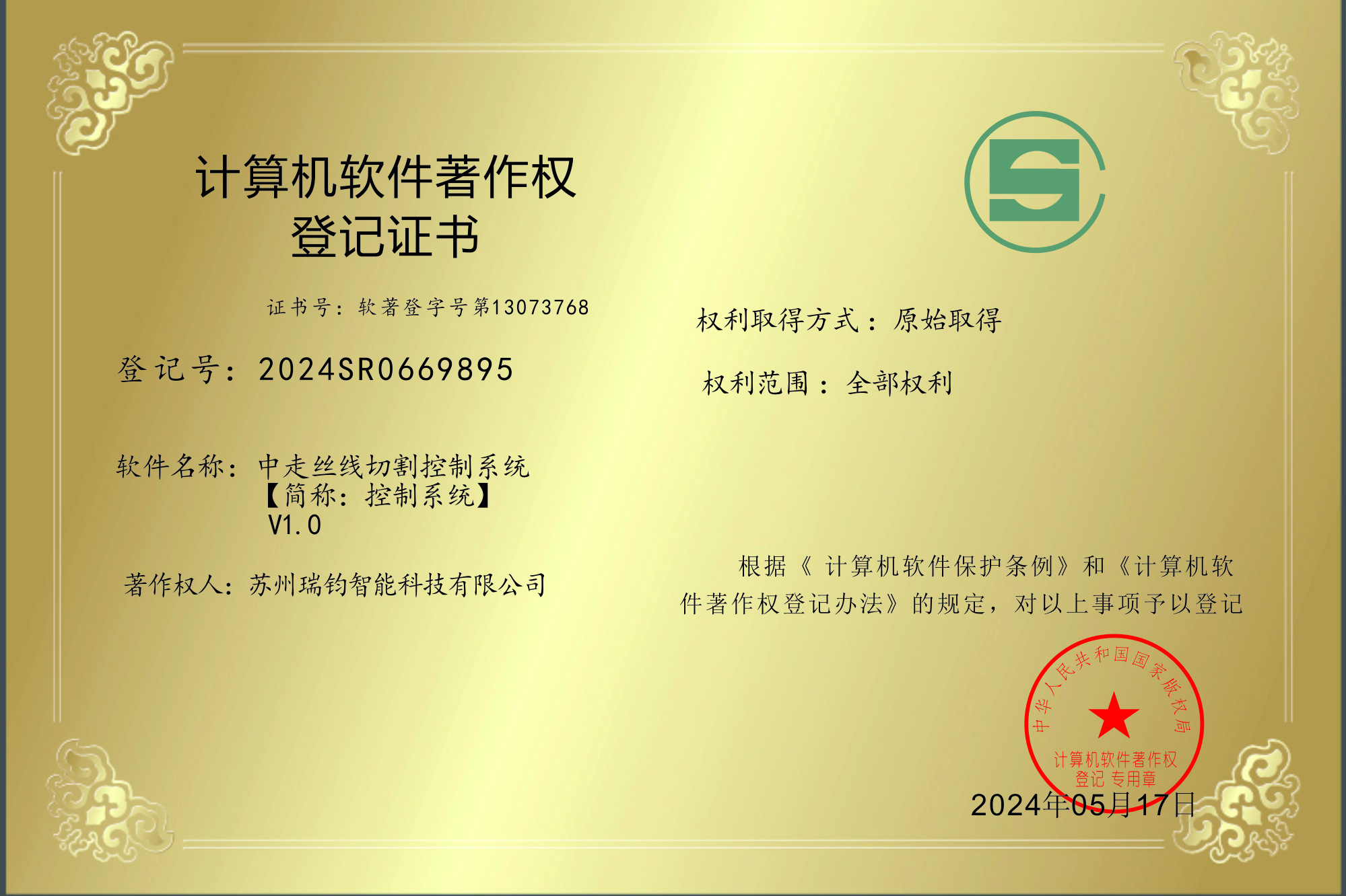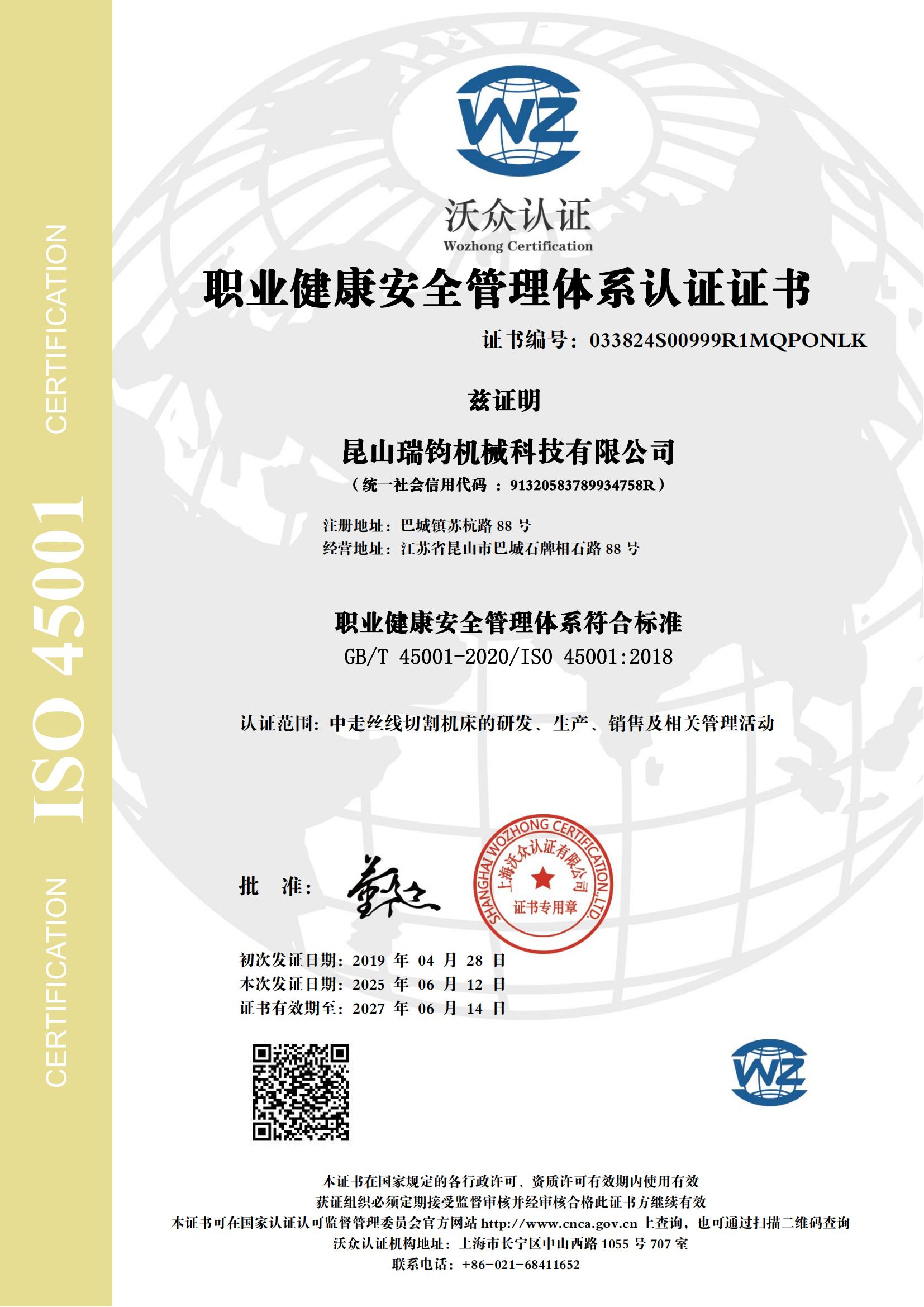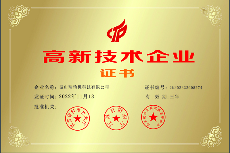 瑞钧科技通过了ISO9001(质量体系)、 ISO14001(环境体系)、 ISO18001(职业健康体系)、CE(欧盟)、SGS 认证、企业安全生产标准化三级证书、职业健康评价、环境保护评价、城市风险管控和辨识。公司获得国家四十多项发明实用专利,被认定江苏省“高新技术企业”、“科技型中小企业”、“隐形冠军企业”,并荣获“高新技术产品”多项及省级重点推广应用“新技术新产品”等荣誉。